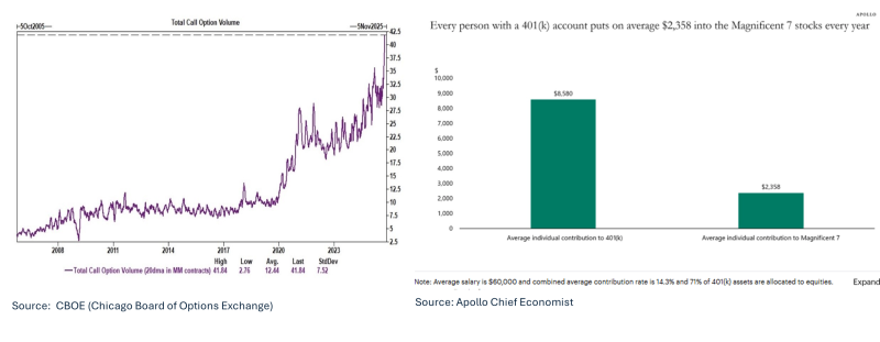 - Individual 401(k) allocations to the Magnificent Seven now represent record concentrations